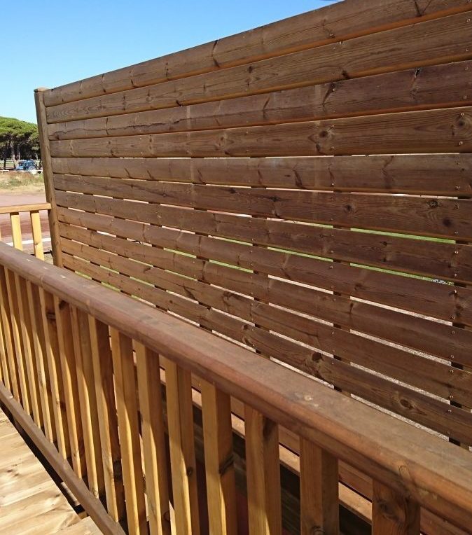Raised wooden terrace with wooden railing